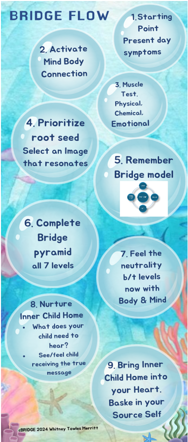 To learn cBRIDGE or become a cBRIDGE practitioner you need to clear your own vessel of emotional wounding’s. It is expected that approximately 51% of emotional clearing takes place as any reflection from unresolved issues can project in inaccurate counsel with others. Whitney takes this most seriously in her trainings. You will understand how it works and the inner interpretations of all involvements from sourcing core wound relationships from this lifetime, prior lifetimes, and indeed in-utero complexities.